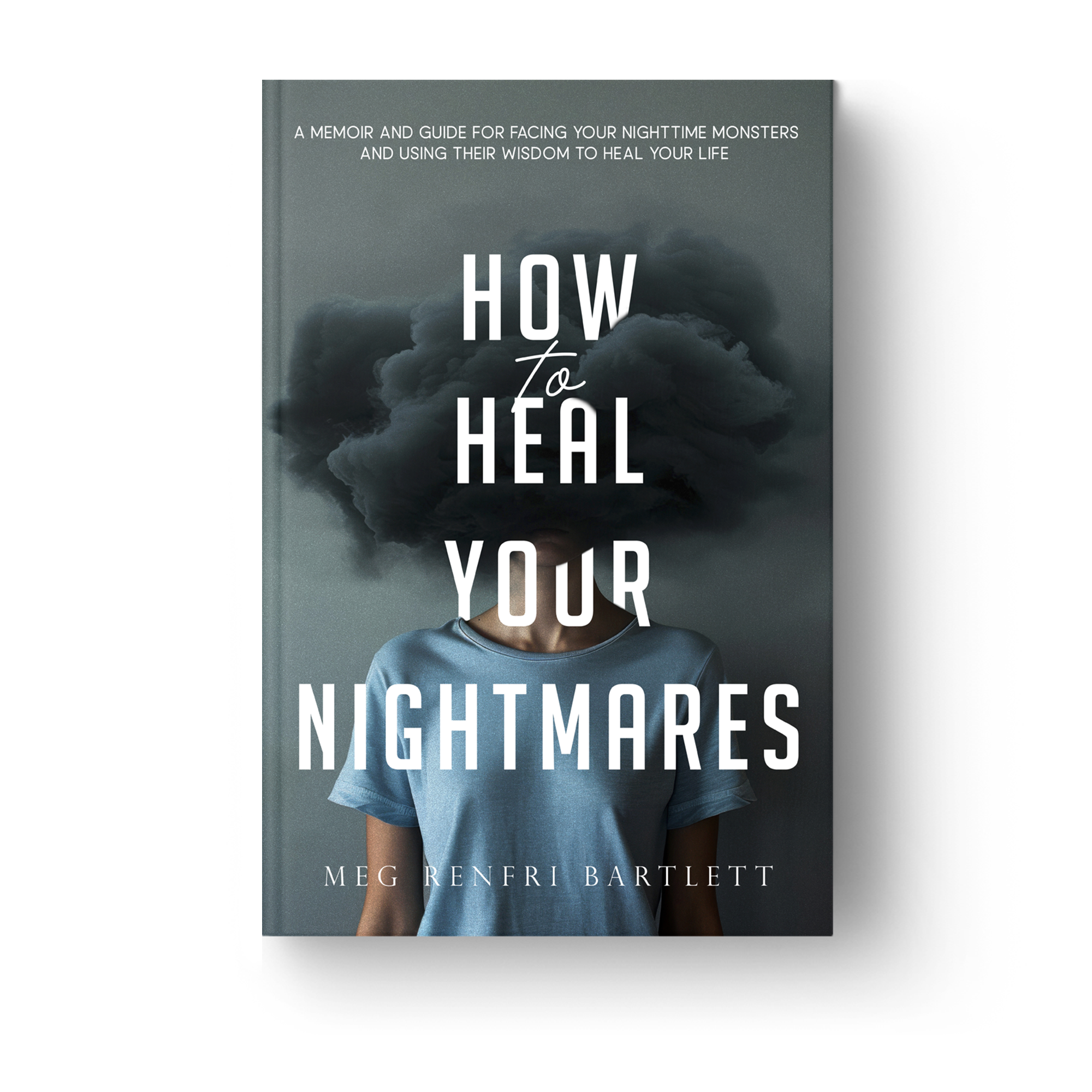 Book cover of 'How to Heal Your Nightmares' by Meg Renfri Bartlett, featuring a person with a cloud obscuring their face, symbolizing turmoil or confusion.